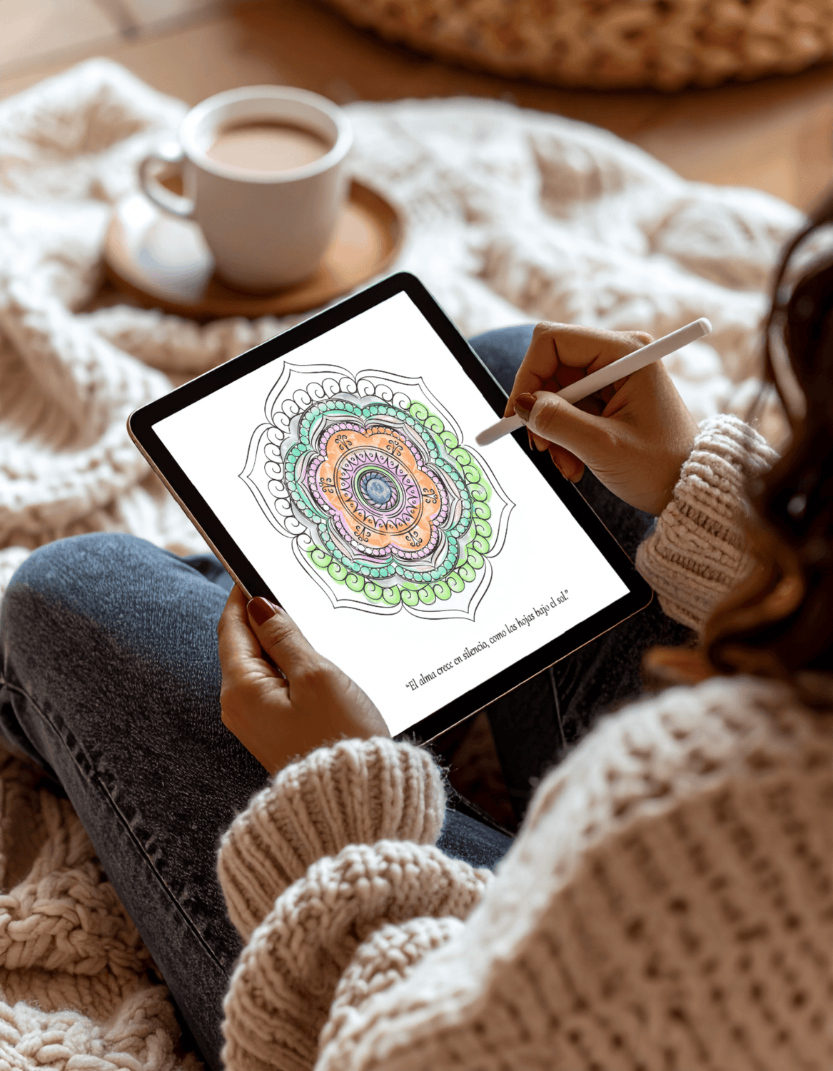 Sentir cómo tu respiración se aquieta y tu mente se ordena mientras el mandala toma forma.